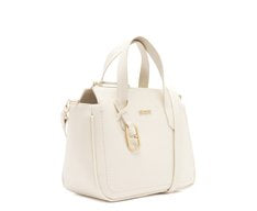 Bolsa Tote Média Bag Charm Branca. O modelo tem shape retangular estruturado com cantoneiras arredondadas, contornado em fita. Possui fecho superior em zíper com puxador em tira. Com alça longa transversal regulável e alças de mão, apresenta detalhe em costura ornamental e aplicação de pin metálico com assinatura Anacapri na capa frontal. Com bolsinho interno para acomodar pequenos itens, o modelo acompanha bag charm metálico Anacapri removível. O acessório pode ser usado separadamente da bolsa.