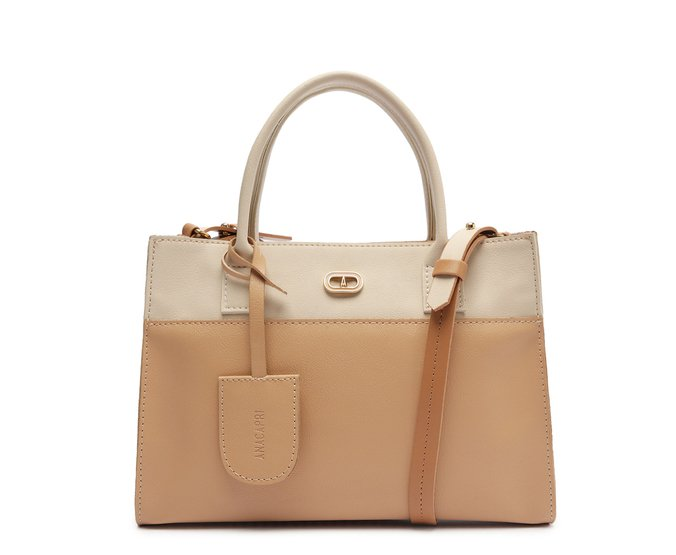 Bolsa tote Anacapri média com costura ornamental bege e branca. O modelo tem shape estruturado e trendy. Possui fecho superior em zíper com puxador em tira, alças de mão estruturadas e dobradas e alça longa transversal bicolor regulável e removível. Apresenta detalhe em costura ornamental e aplicação de pin metálico em cápsula redonda com a inicial “A”- assinatura Anacapri, na capa frontal. O modelo acompanha bag charm com assinatura Anacapri carimbada e contorno em pespontos. O acessório é removível e pode ser usado separadamente da bolsa.