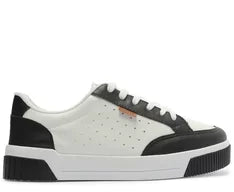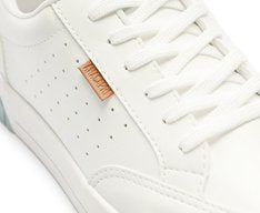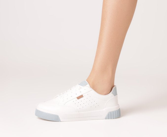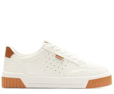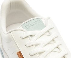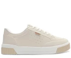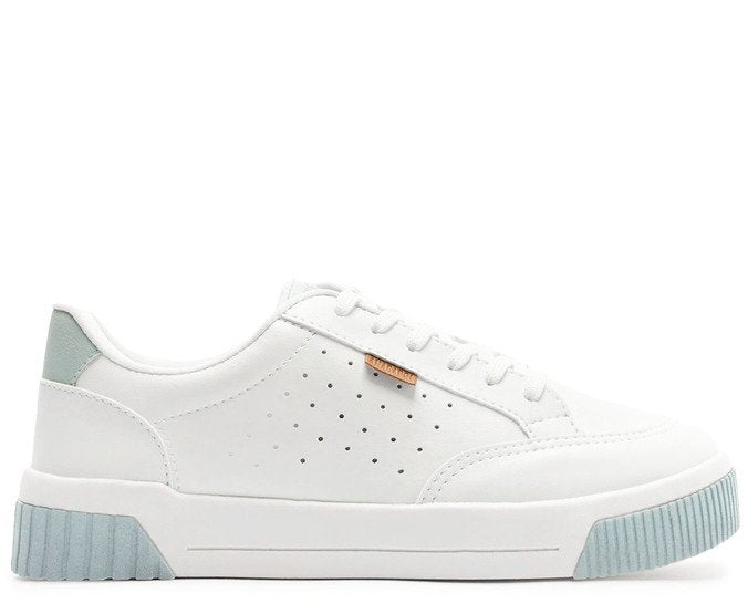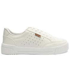 Tênis Sola Vulcanizada Urban Furinhos Branco e Azul. De sola alta flatform branca vulcanizada, o modelo apresenta design de perfuros nas laterais e recortes bege por todo o cabedal. De amarrar, com atacadores brancos, possui parte interna forrada em branco. Com aplicação de tag marrom lateral com inscrição do nome da marca.